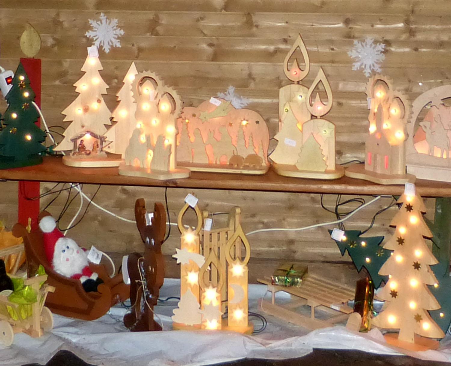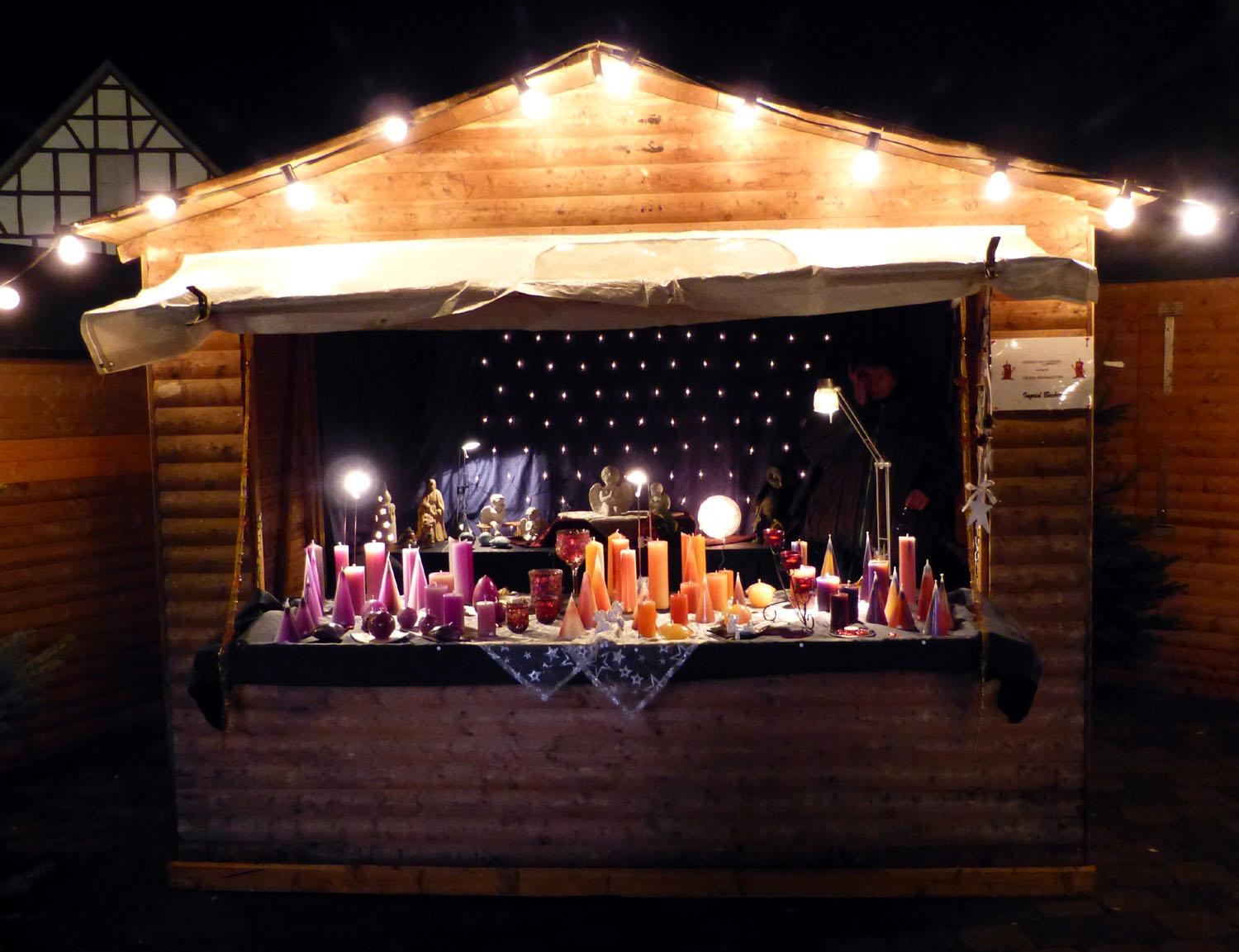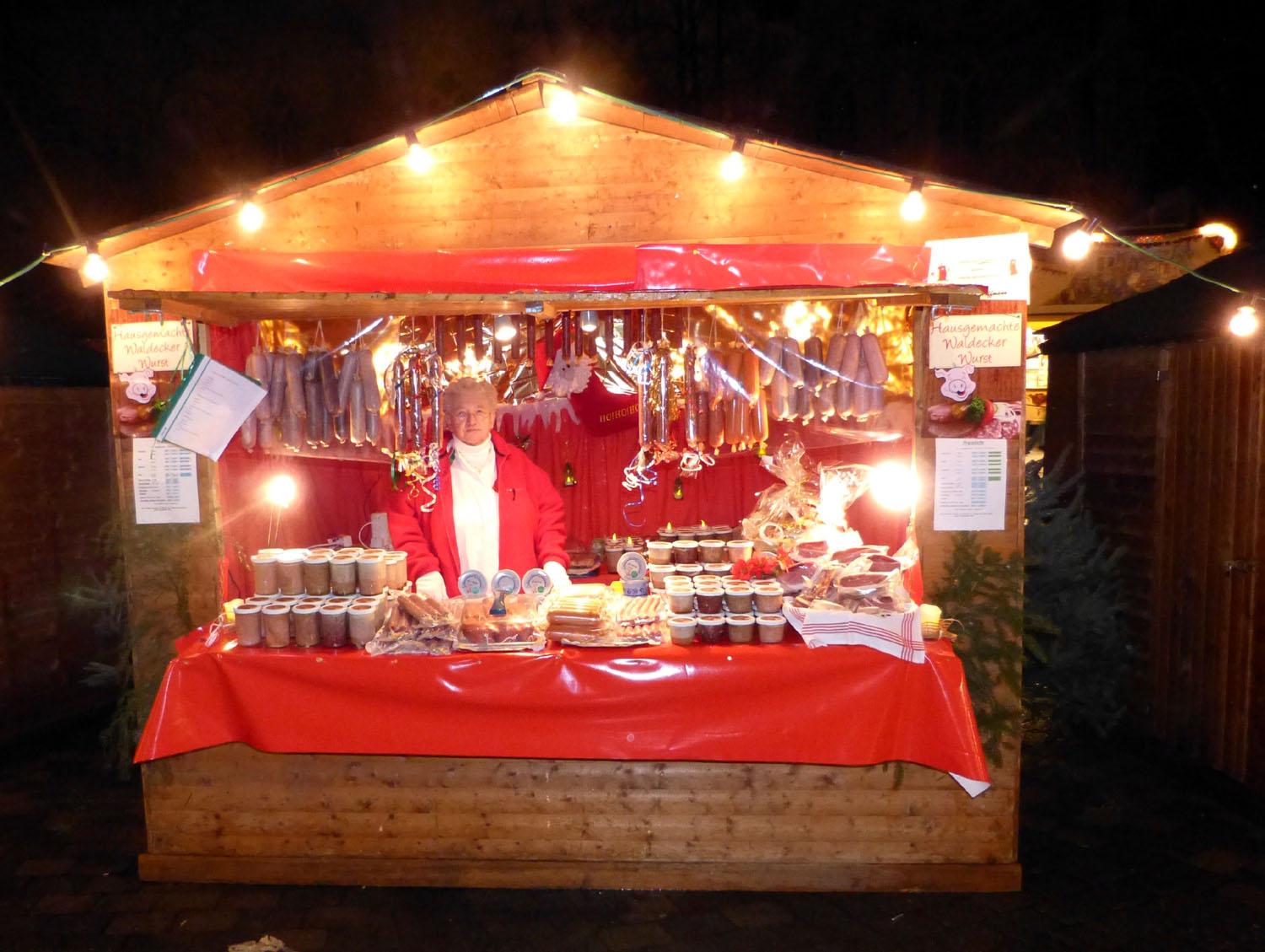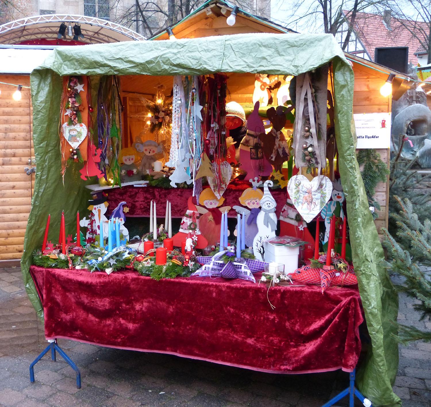 Bei dem Angebot von Kunsthandwerk aus Holz, Geschenkartikeln und Marsberger Kaffee vom Regenbogenladen, selbstgestalteten Kerzen und Engeln, Windlichtern, Bildern und Krippen, Genähtem mit Tiermotiven, Hausmacher-Wurst, Likören, Marmeladen, handgestrickten Socken, Floristik und Gestecken, Kräuterbonbons, Accessoires, Taschen und Kissen sowie Magnetschmuck blieben in den letzten Jahren kaum Wünsche offen. Auch ein Kinderkarussell und ein Süßwarenstand dürfen nicht fehlen. Für das leibliche Wohl ist mit verschiedenen Leckereien und einigem Herzhaften immer gesorgt.