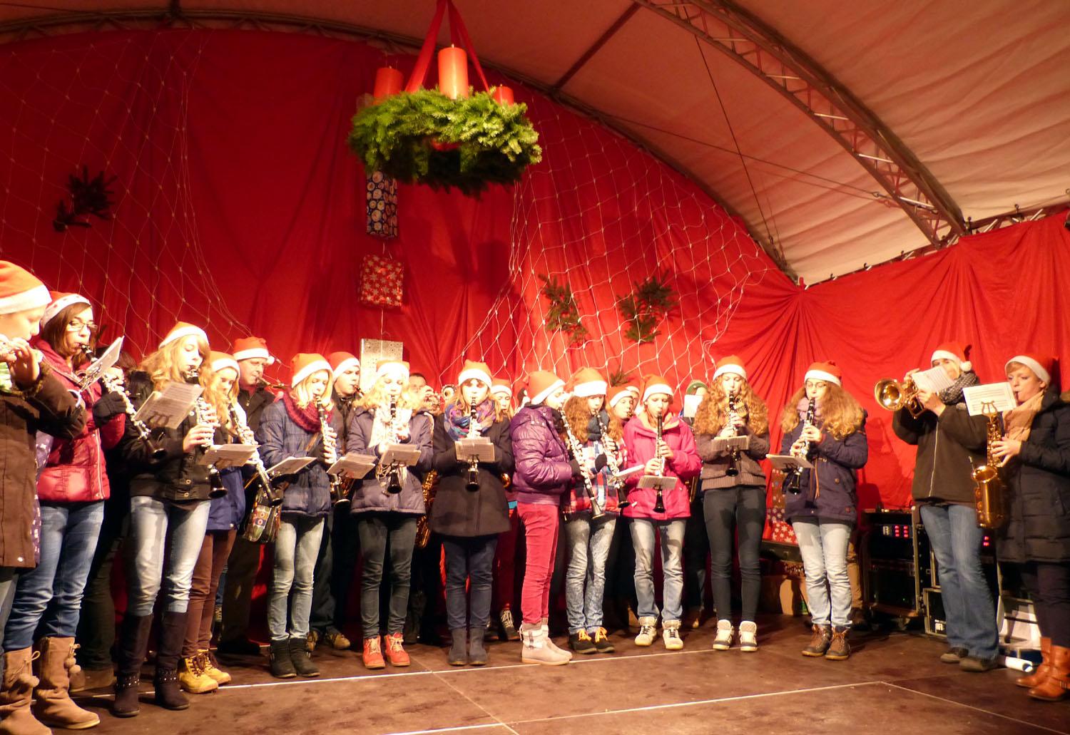 Auf der Weihnachtsmarkt-Bühne erwartet die Besucher ein abwechslungsreiches Programm. Schulen, Kindergärten und Musikvereine zeigen, was sie eingeübt haben